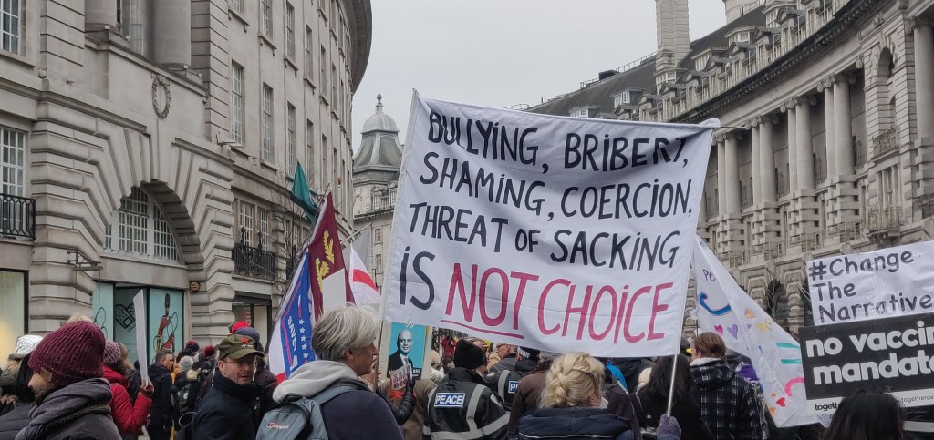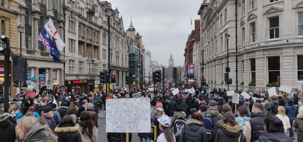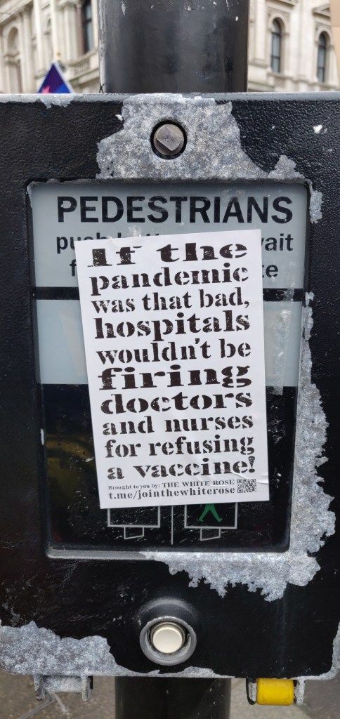 Above: Images from the N.H.S. and Anti-P.C.S.C. Bill solidarity march against the mandatory vaccination of N.H.S. Staff (as well as everyone else who offered reasonable disagreement, of course) and the impending legislation, which has now been passed despite the staunch opposition that was largely repressed by the mainstream media